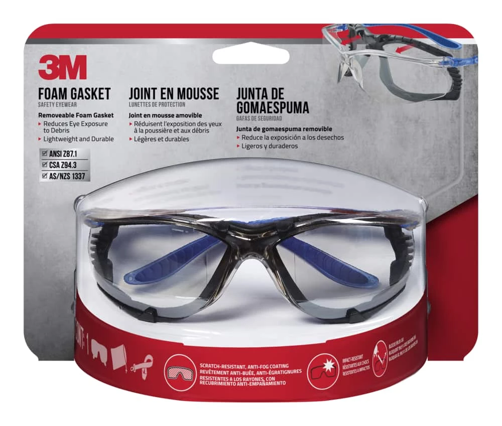 - 3M™ Foam Gasket Anti-Fog Safety Glasses provide a removable foam gasket to help mask eye exposure to dust and debris