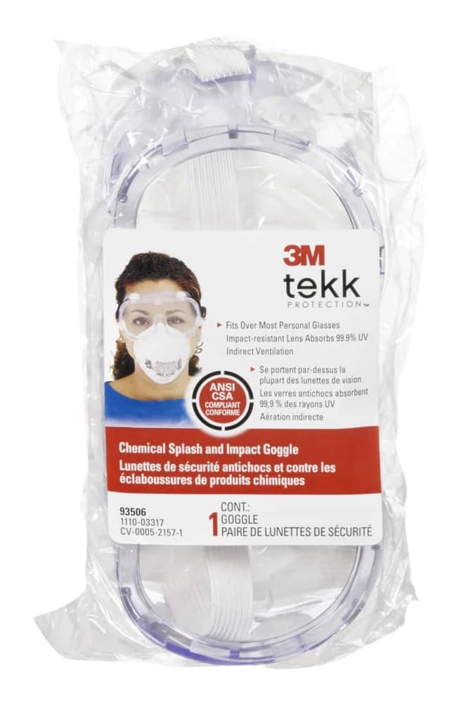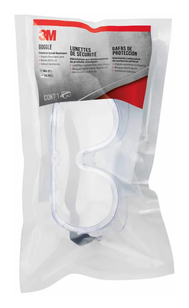 - 3M Chemical Splash and Impact Safety Goggles provides a clear lens for increased visibility