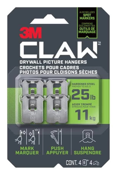 - 3M Claw Drywall Picture Hanger is proven to hold up to 25 pounds