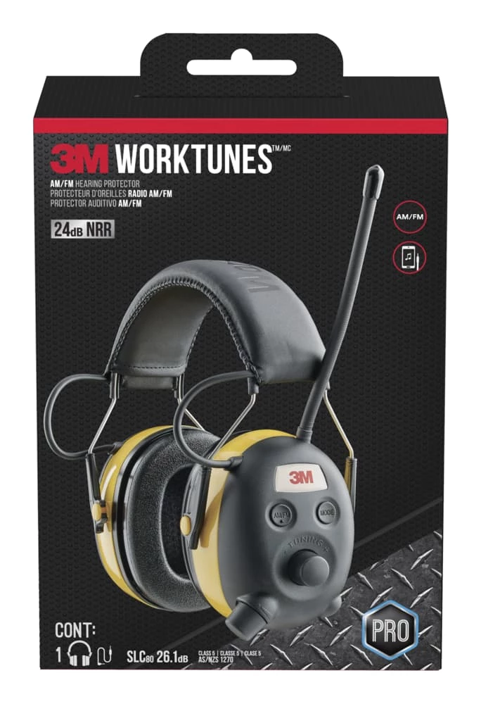 - Tune into your favourite AM/FM radio stations with the 3M™ Worktunes AM/FM Hearing Protector