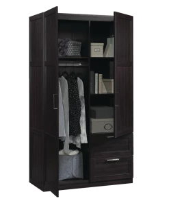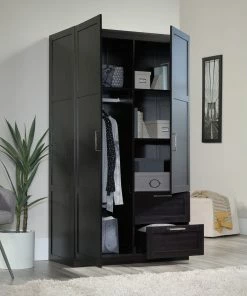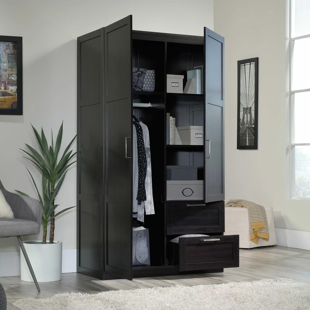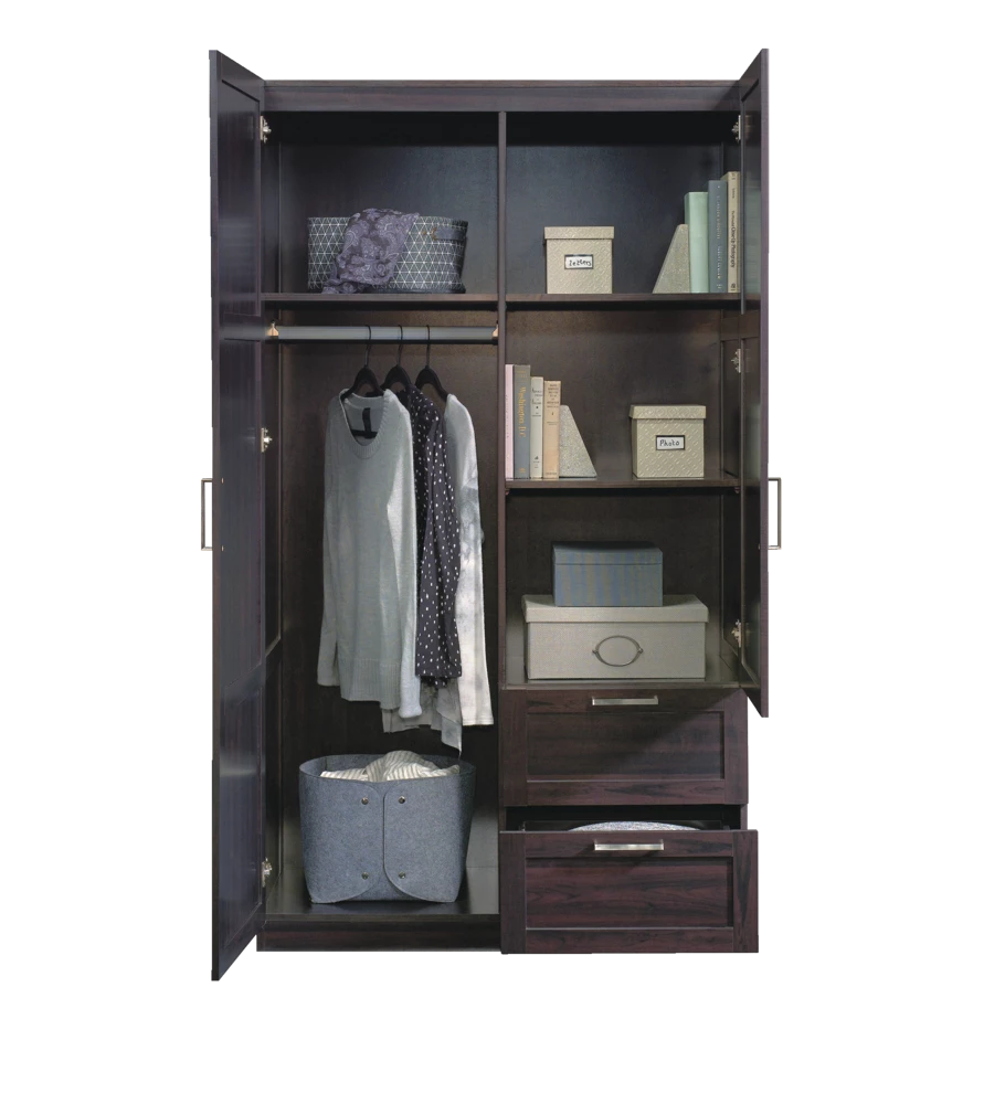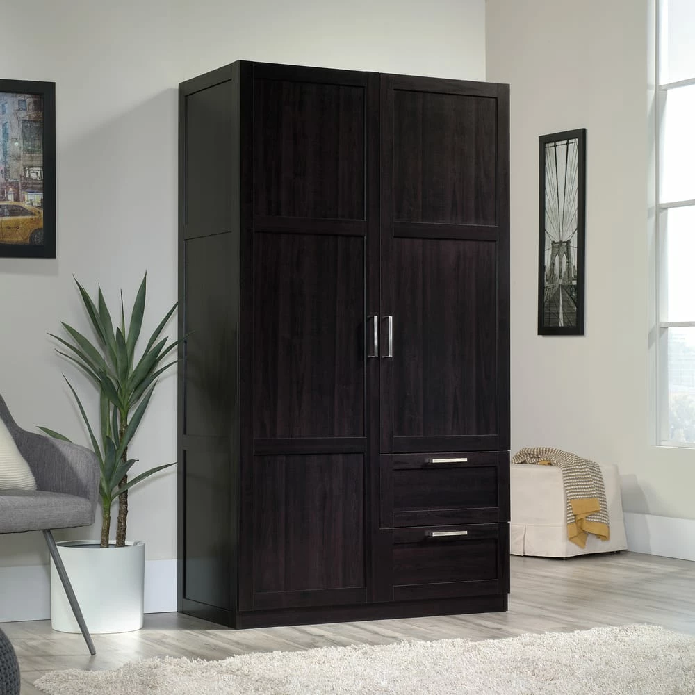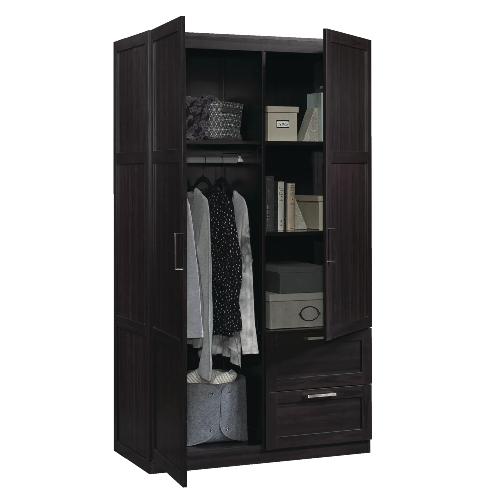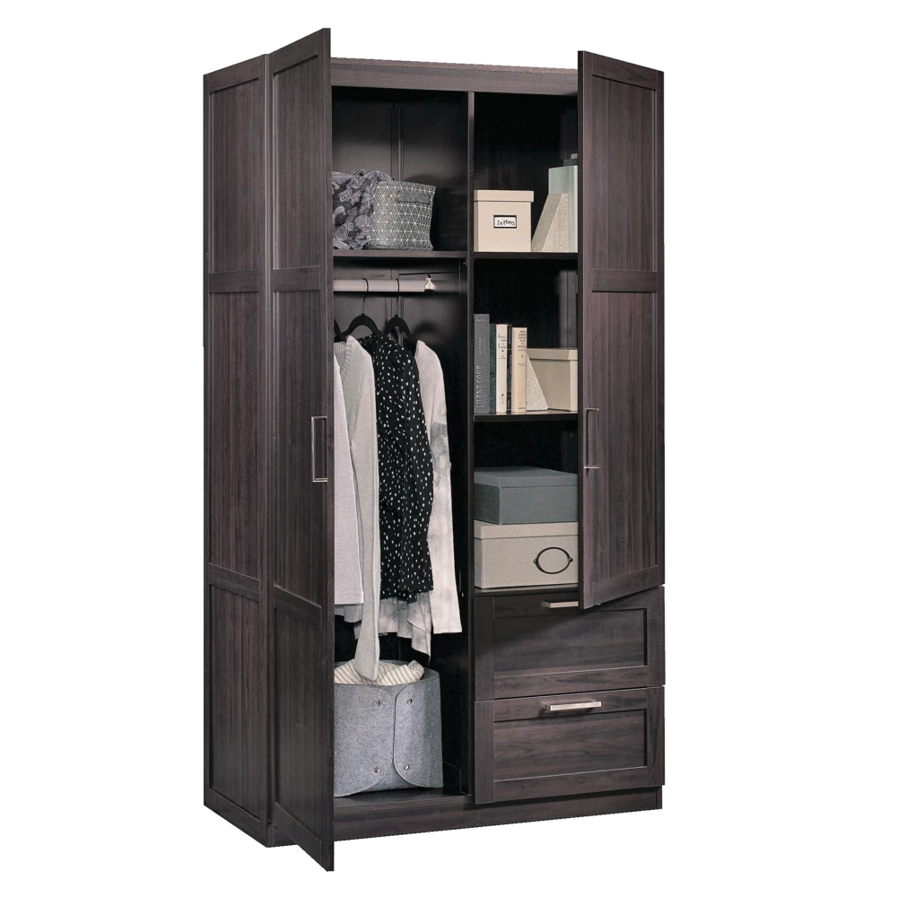 - Built with ample storage space, the Sauder 2-Door / 2-Drawer Wardrobe is the perfect solution to help keep your home organized