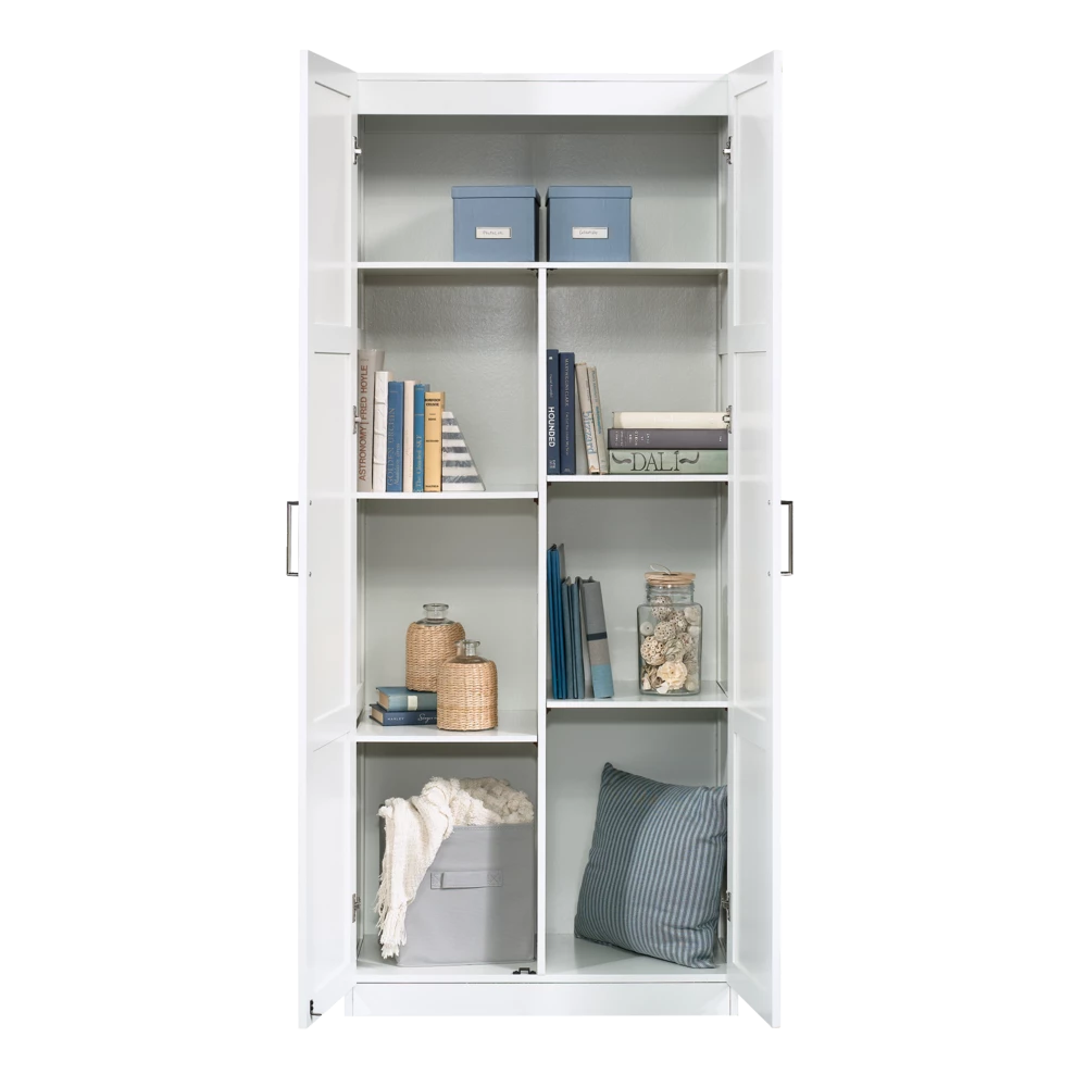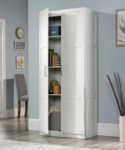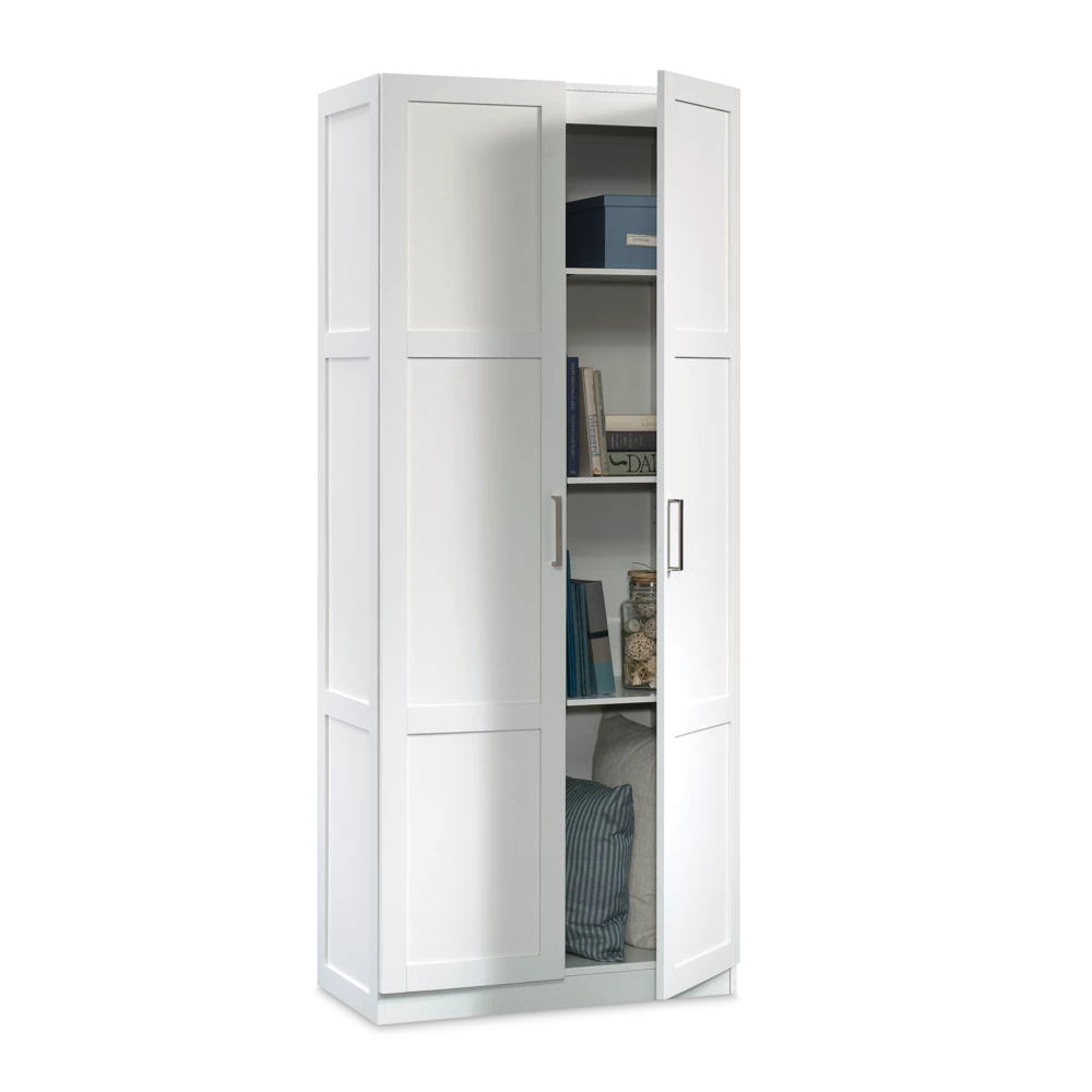 - Built with ample storage space, the Sauder 2-Door Cabinet is the perfect solution to help keep your home organized