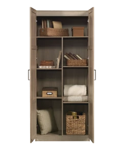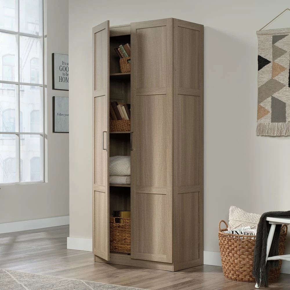- Built with ample storage space, the Sauder 2-Door Cabinet is the perfect solution to help keep your home organized