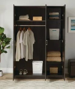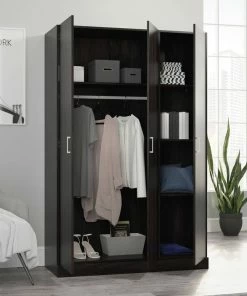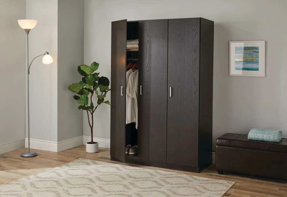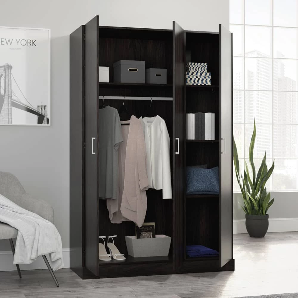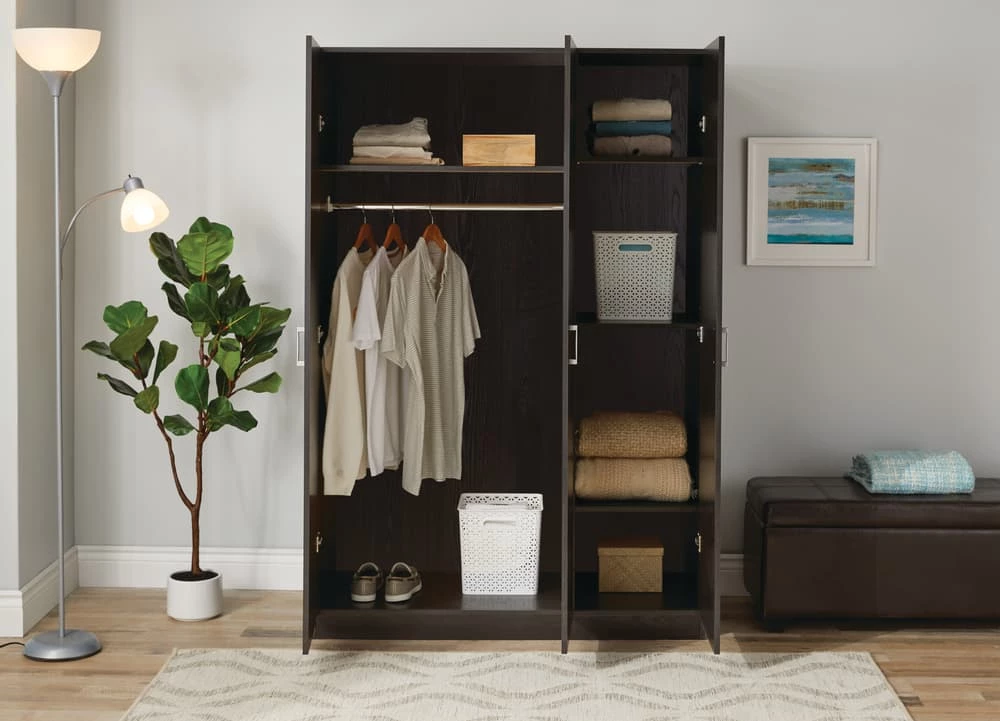 - Built with ample storage space, the Sauder 3-Door Wardrobe is the perfect solution to unclutter your home and stay organized