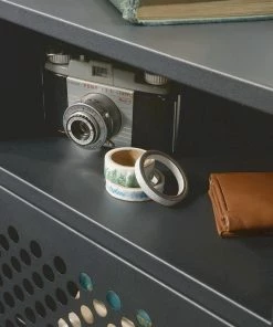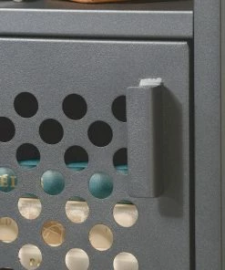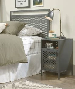 - Sauder Boulevard Cafe Metal Night Stand with Storage features hidden storage behind door with fixed shelf that helps conceal clutter and chaos