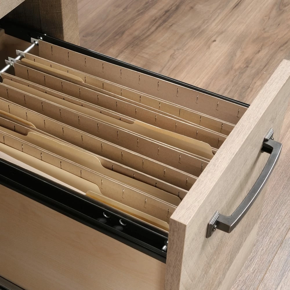 - Lower drawer with full extension slides holds letter-size hanging files to help keep you organized