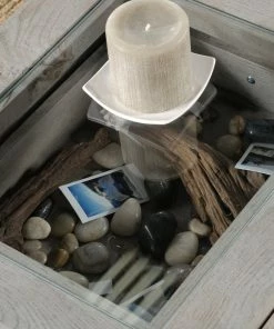 - Easy-glide drawer features glass display top for decor and memorabilia