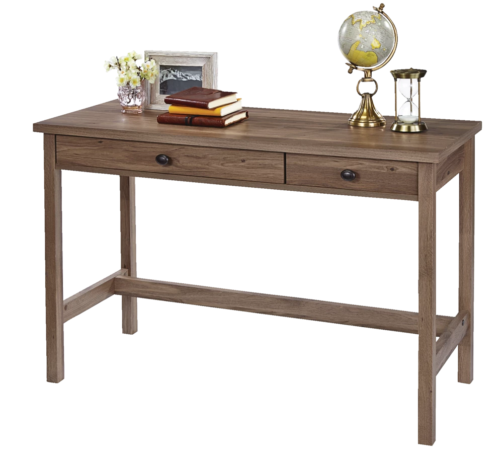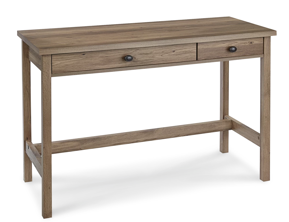 Sauder County Line Desk will be the apple of your eye with its rustic elegance and contemporary flair. With a warm yet sophisticated salt oak finish, two smooth running drawers for storage, and ample surface space, this versatile piece belongs in your home.