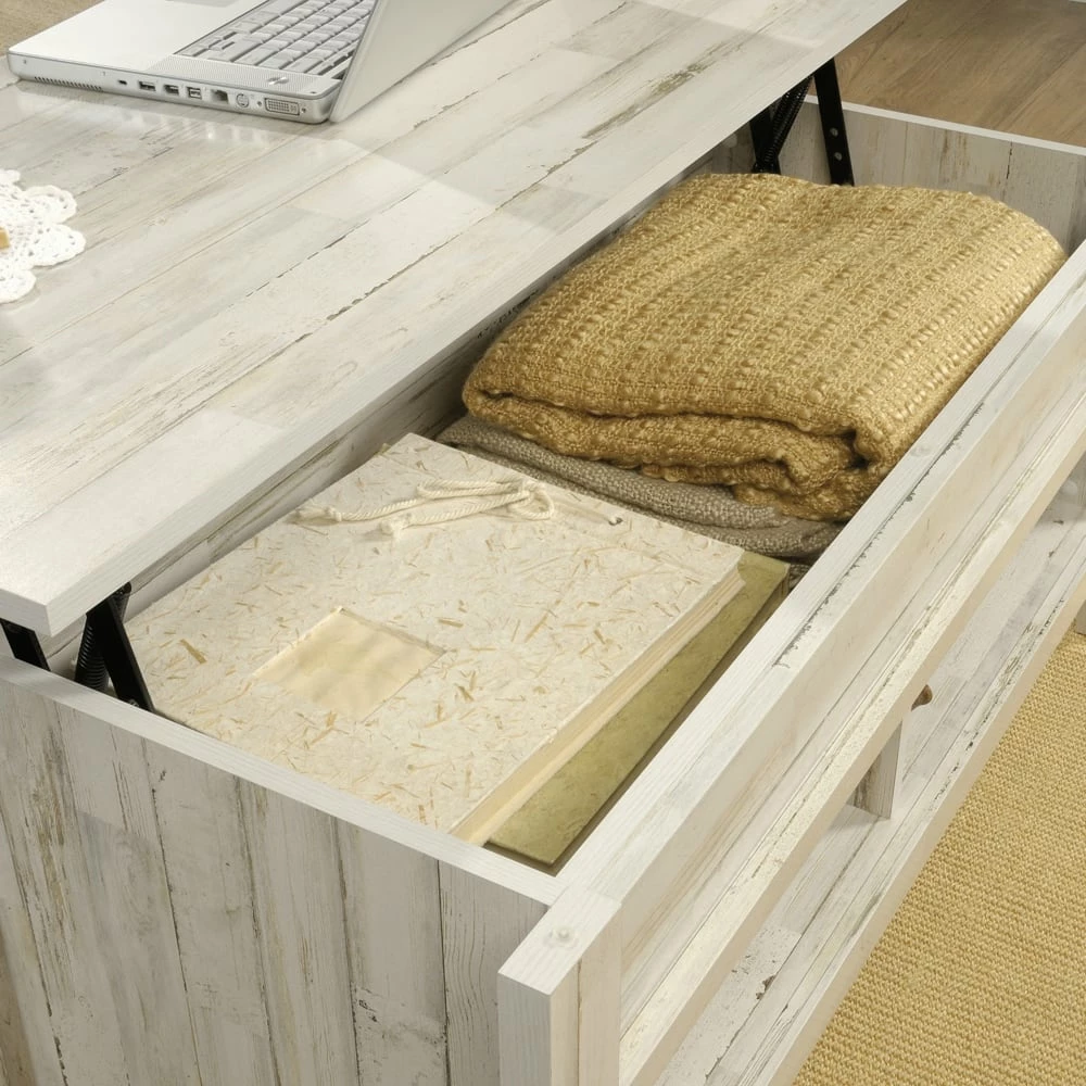- Redefine your living space with this unique Sauder Dakota Pass Lift Top Coffee Table