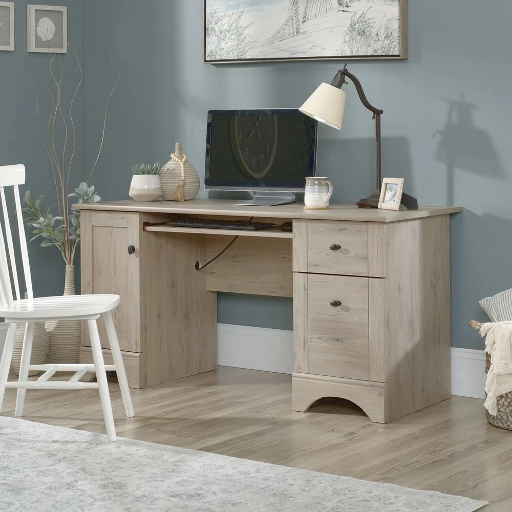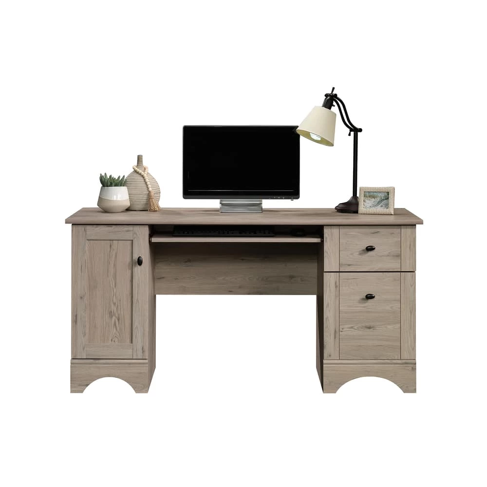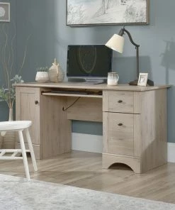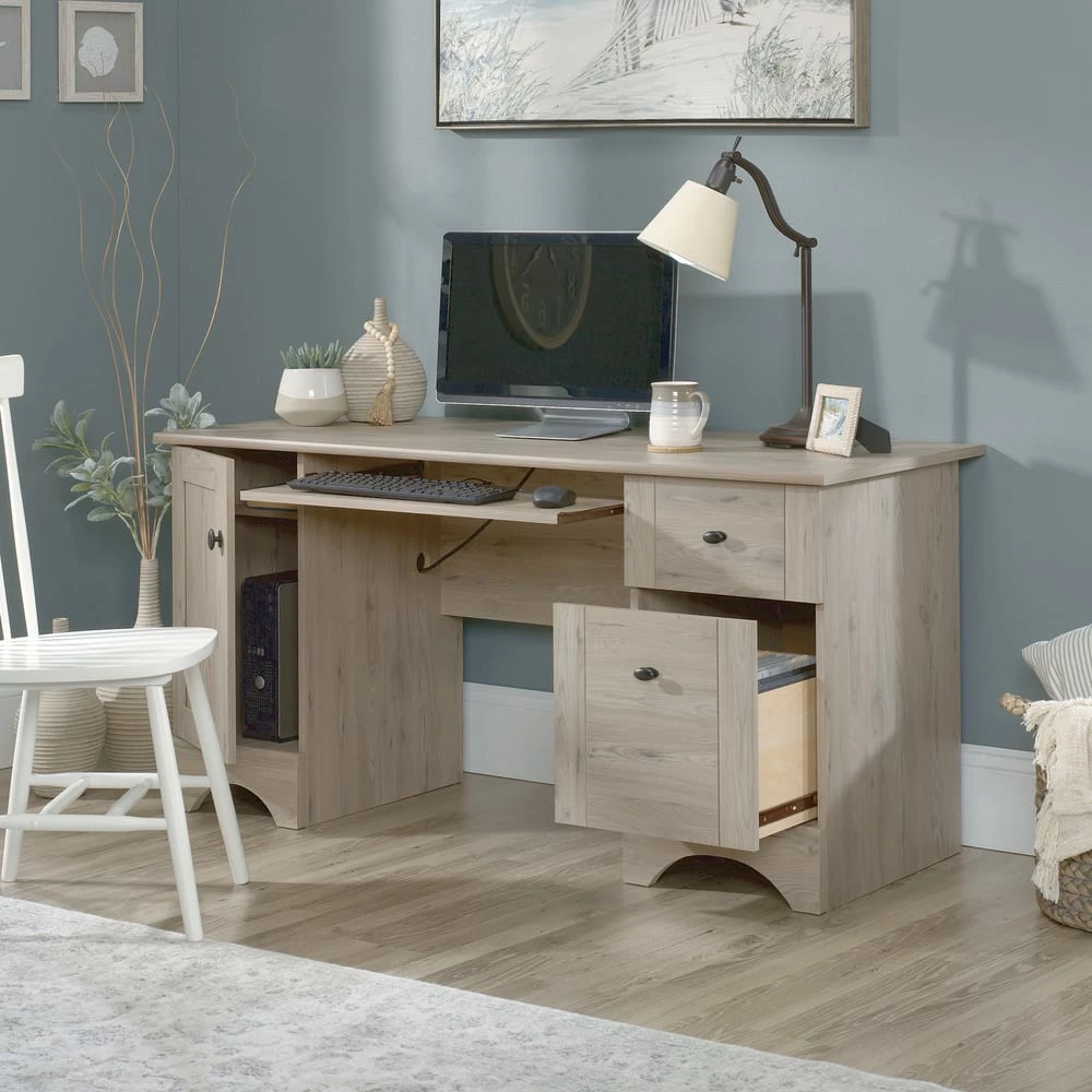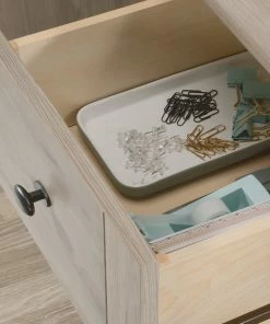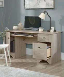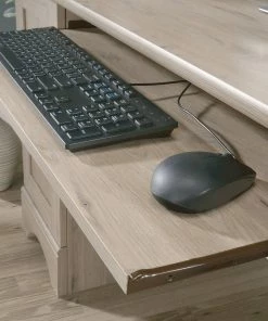 - Sauder Easy-to-Assemble Computer Desk with Slide-Out Keyboard Tray is quick and easy to assemble with the patented T-slot drawer system