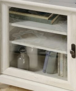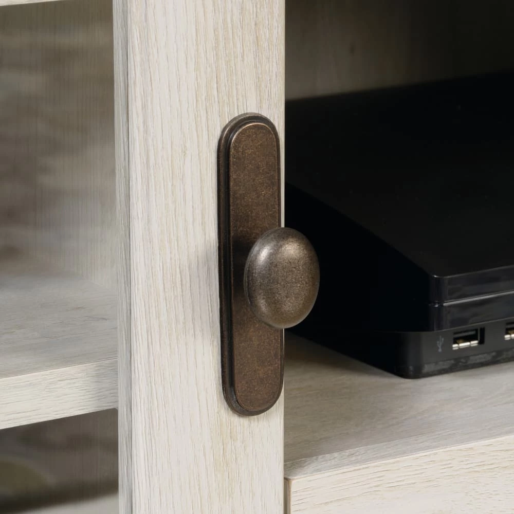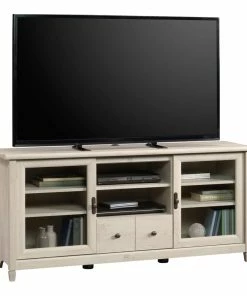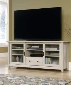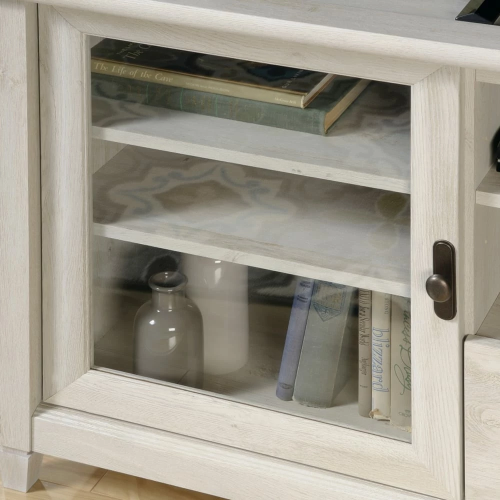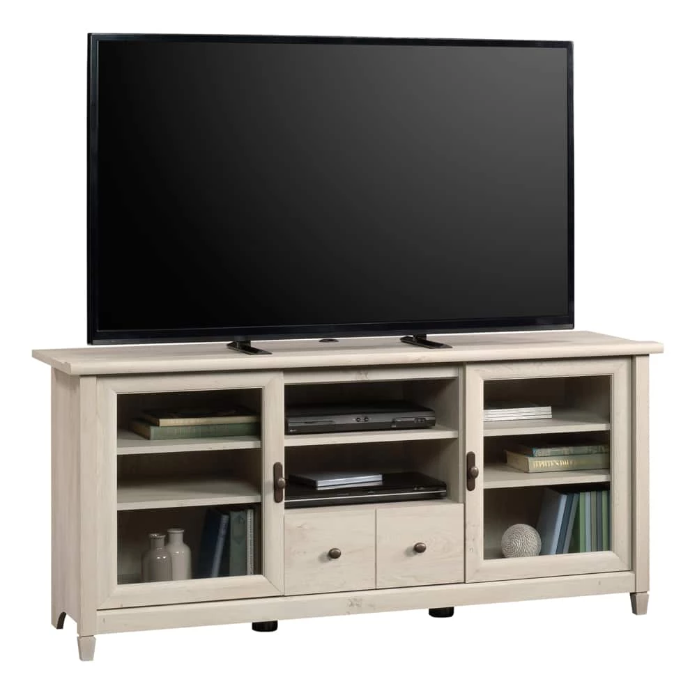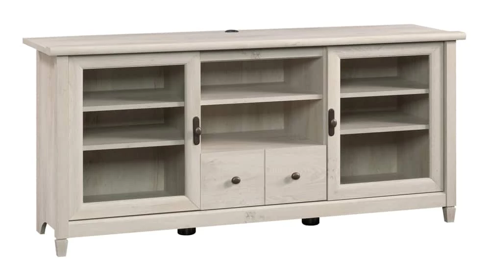 - Beautify your living room or entertainment space with the sleek design and charming style of this Sauder Edge Water Entertainment Credenza