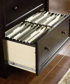 - Features drawers with full extension slides that can hold letter or legal size hanging files