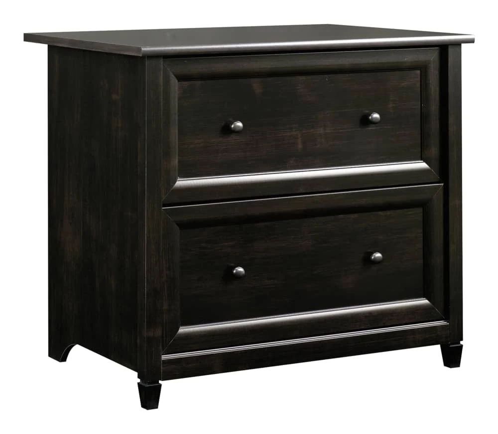 - Sauder Edge Water Lateral File boosts a rich Estate Black finish to compliment any colour palette