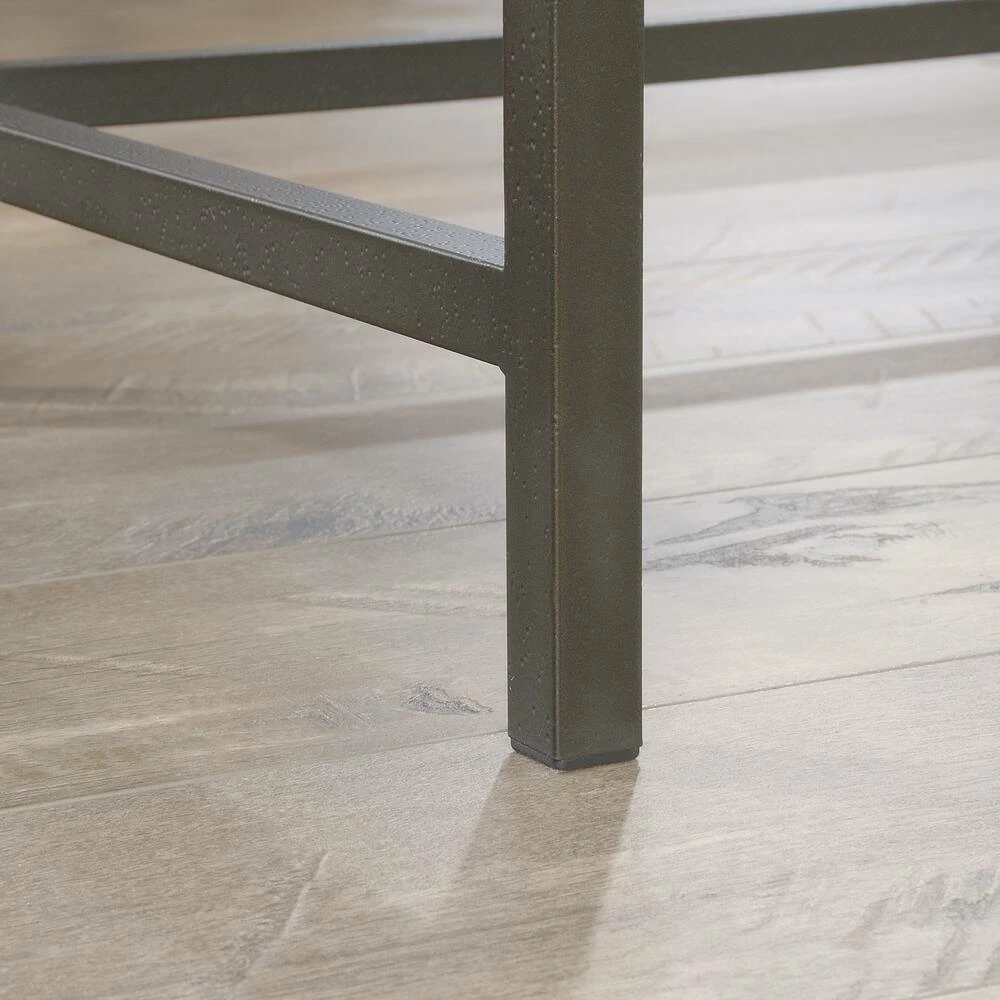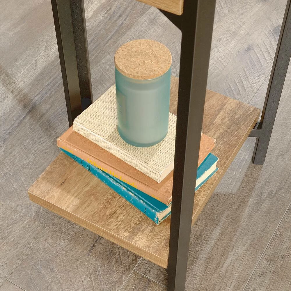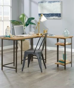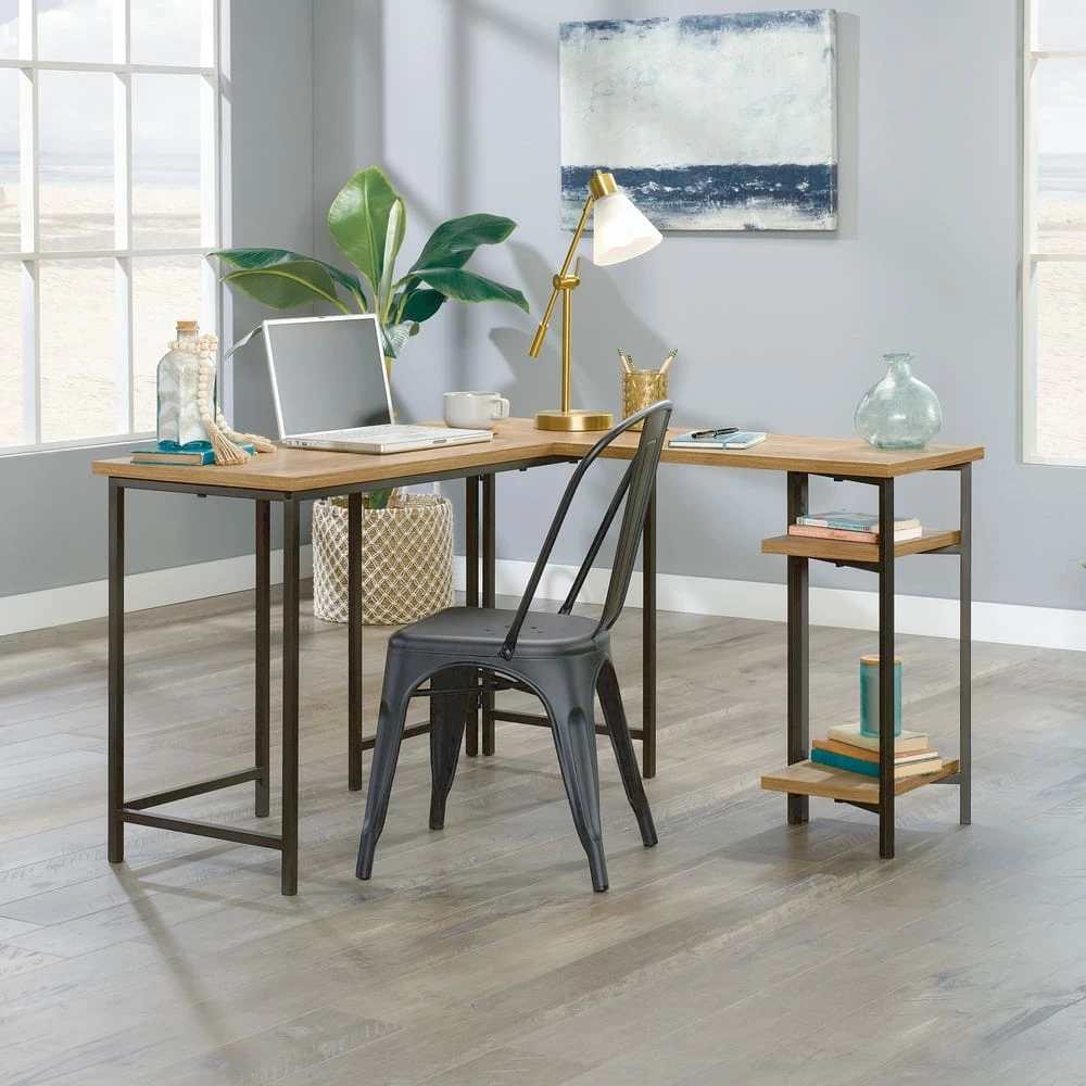 - Sauder North Avenue Home Office L-Desk with Storage features a spacious top surface for optimal work area
