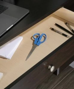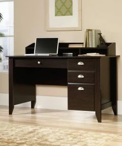 - Work from home in style with this modern Sauder Shoal Creek Desk with Hutch