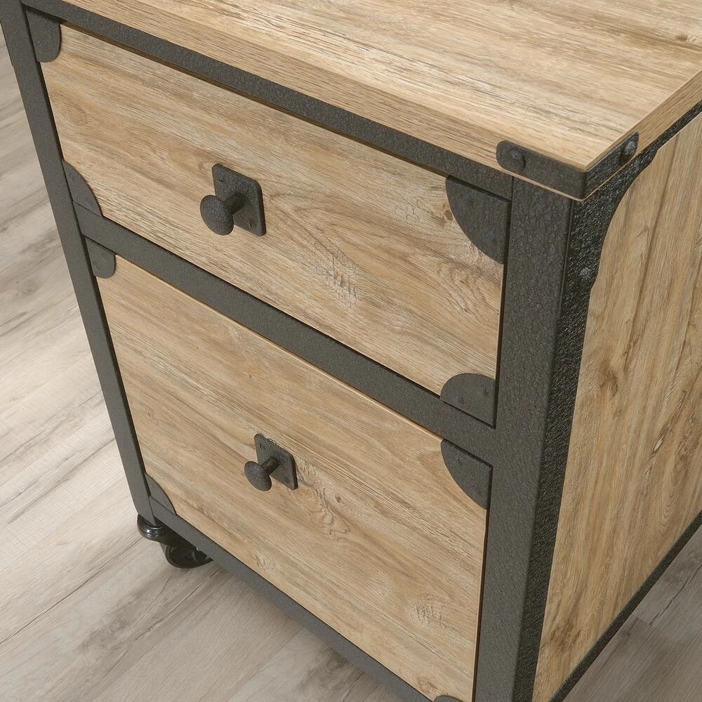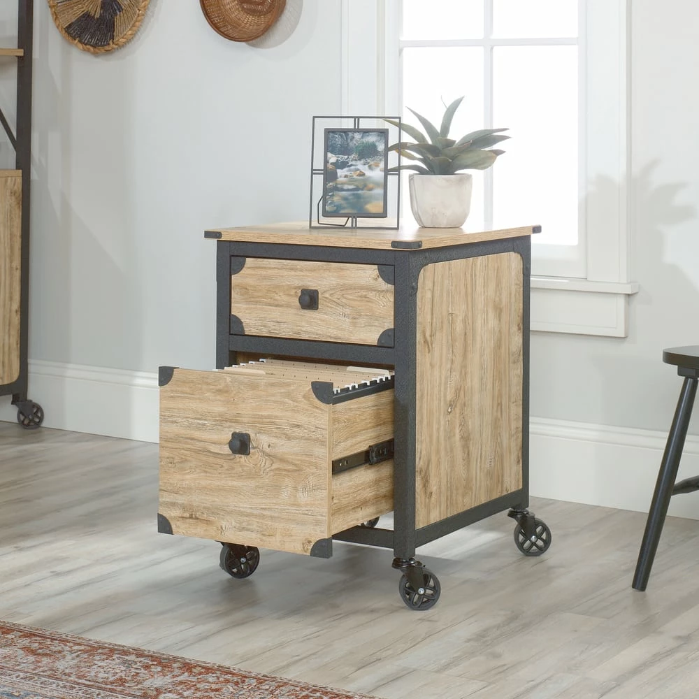 - Sauder Steel Pedestal River File Cabinet with Drawers features a top drawer with metal runners and safety stops to keep you and your family safe