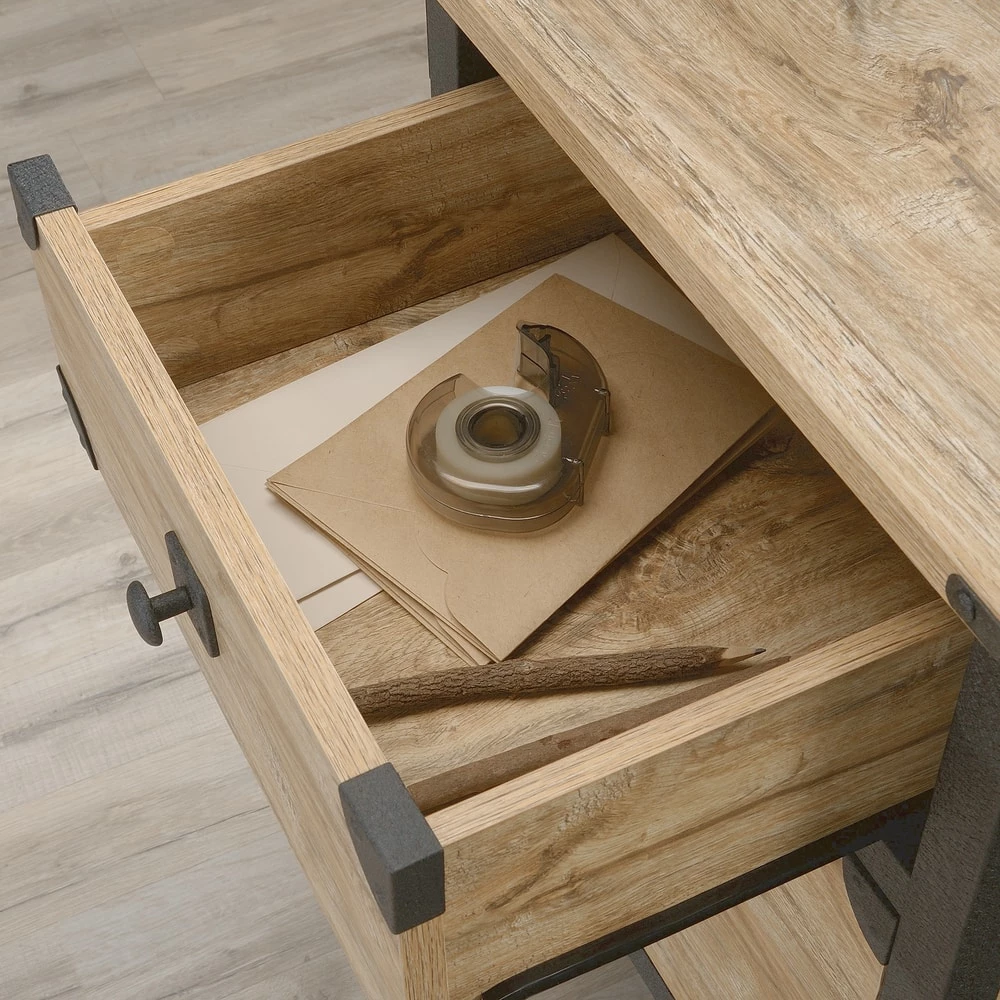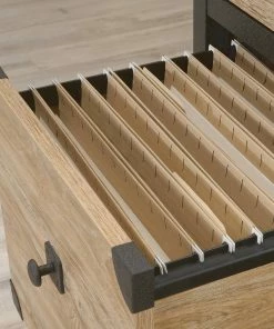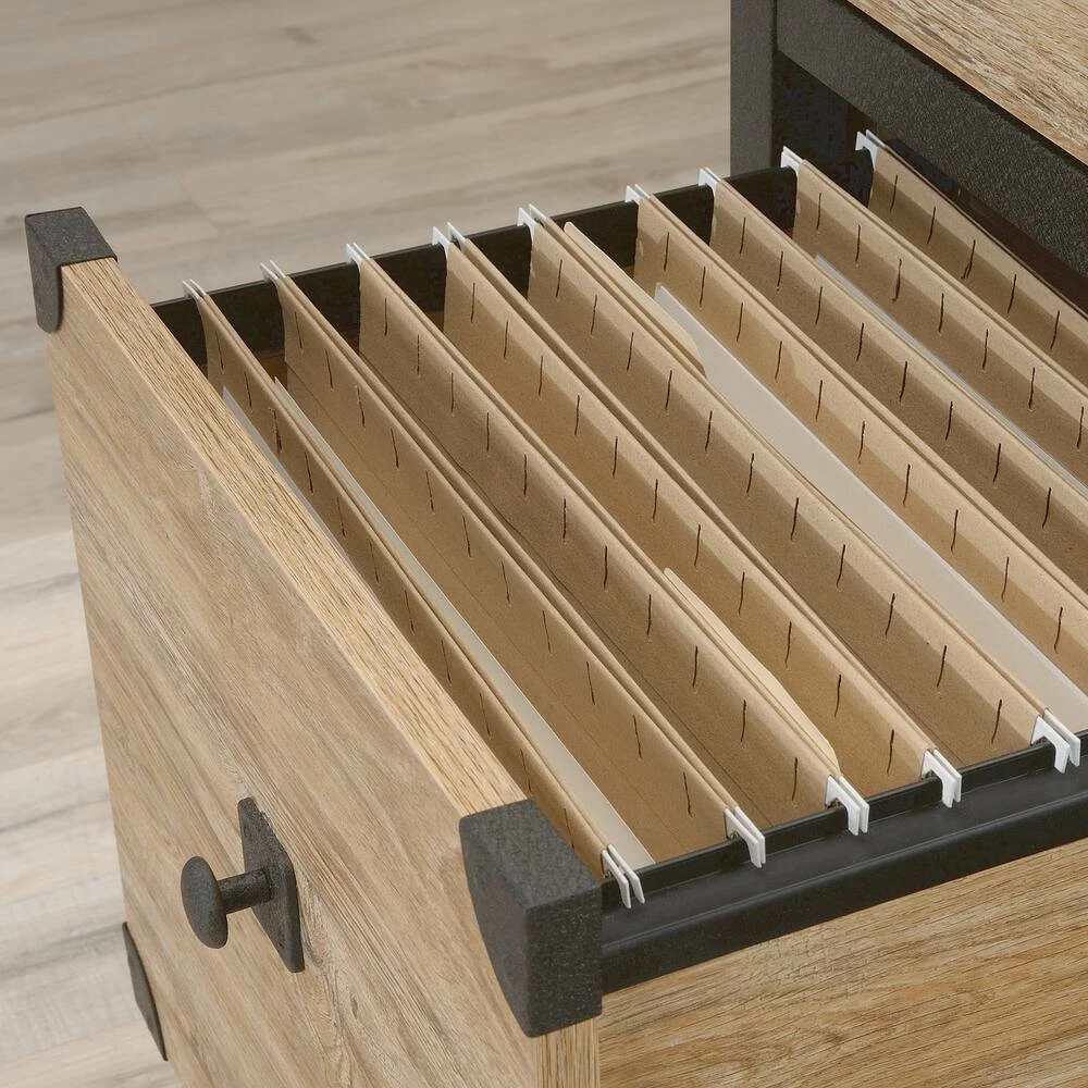 - Lower drawer with full extension slides holds letter-size hanging files to help keep you organized