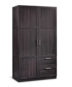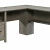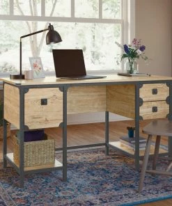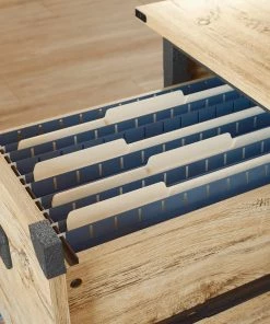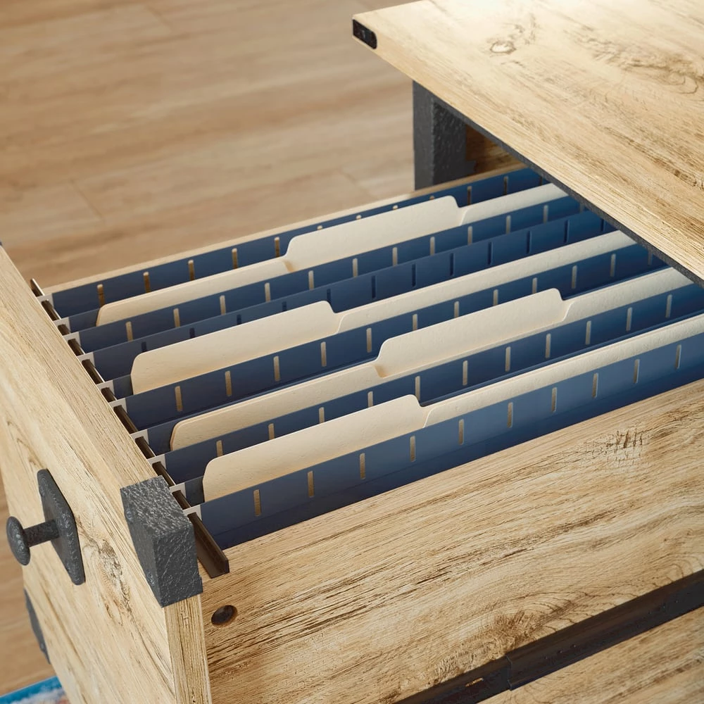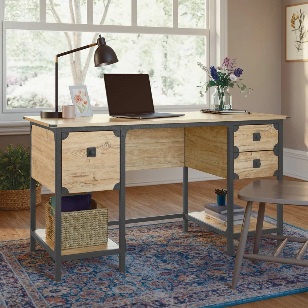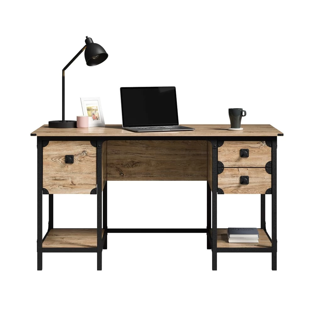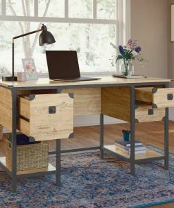 - Sauder Steel River Double Pedestal Desk with Storage features a file drawer with full extension slides to hold letter-size hanging files