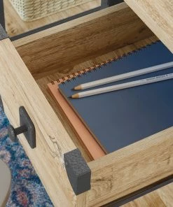 - Two storage drawers for office supplies feature metal runners and safety stops