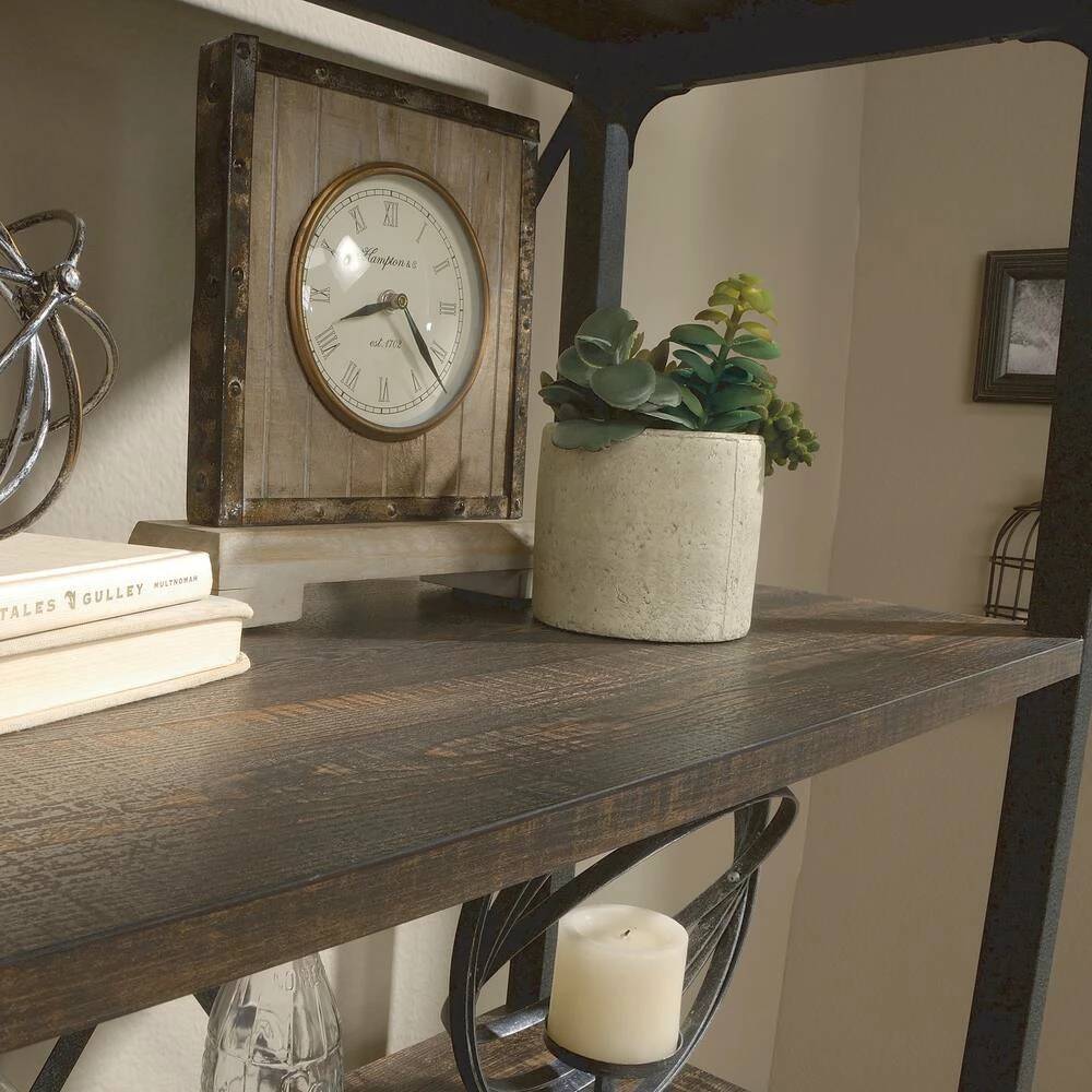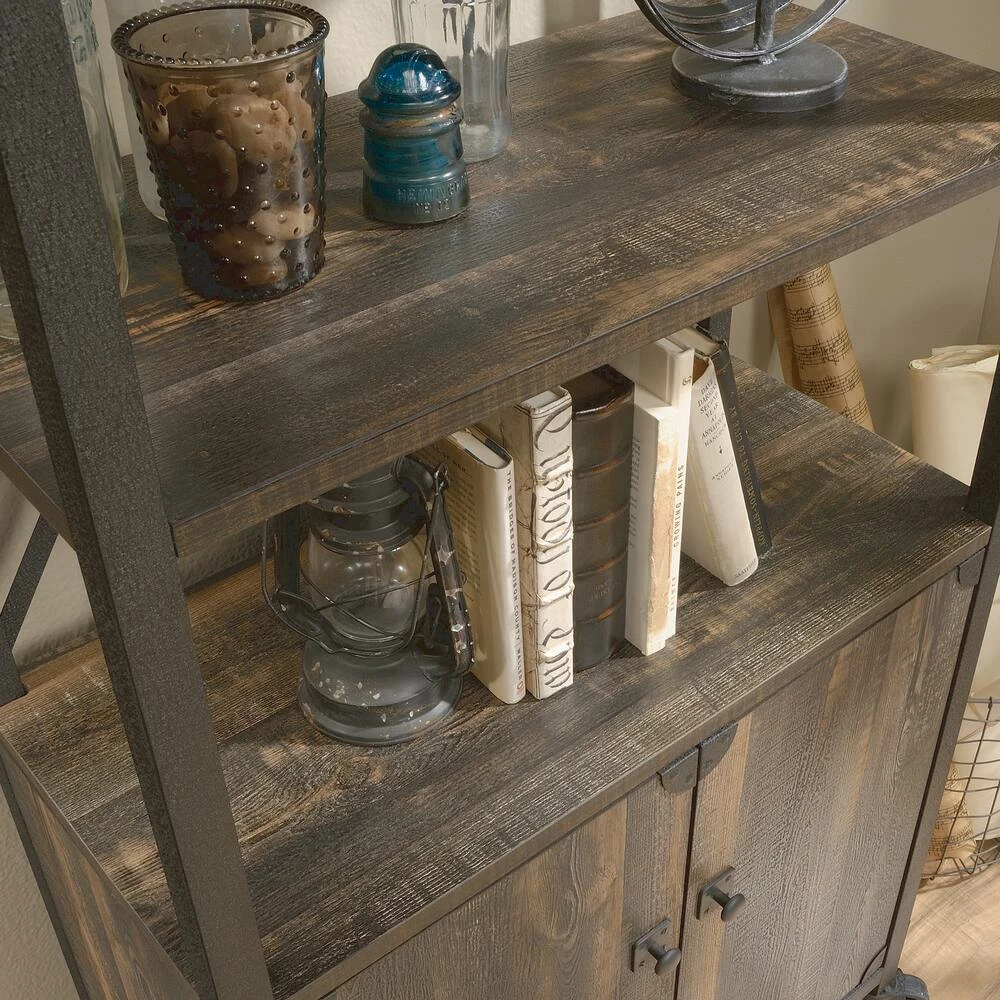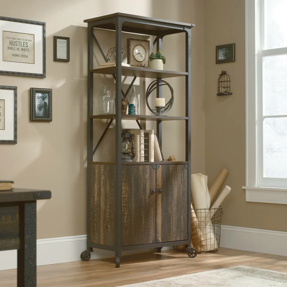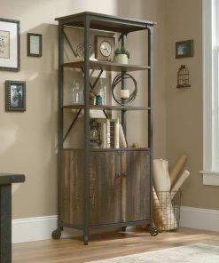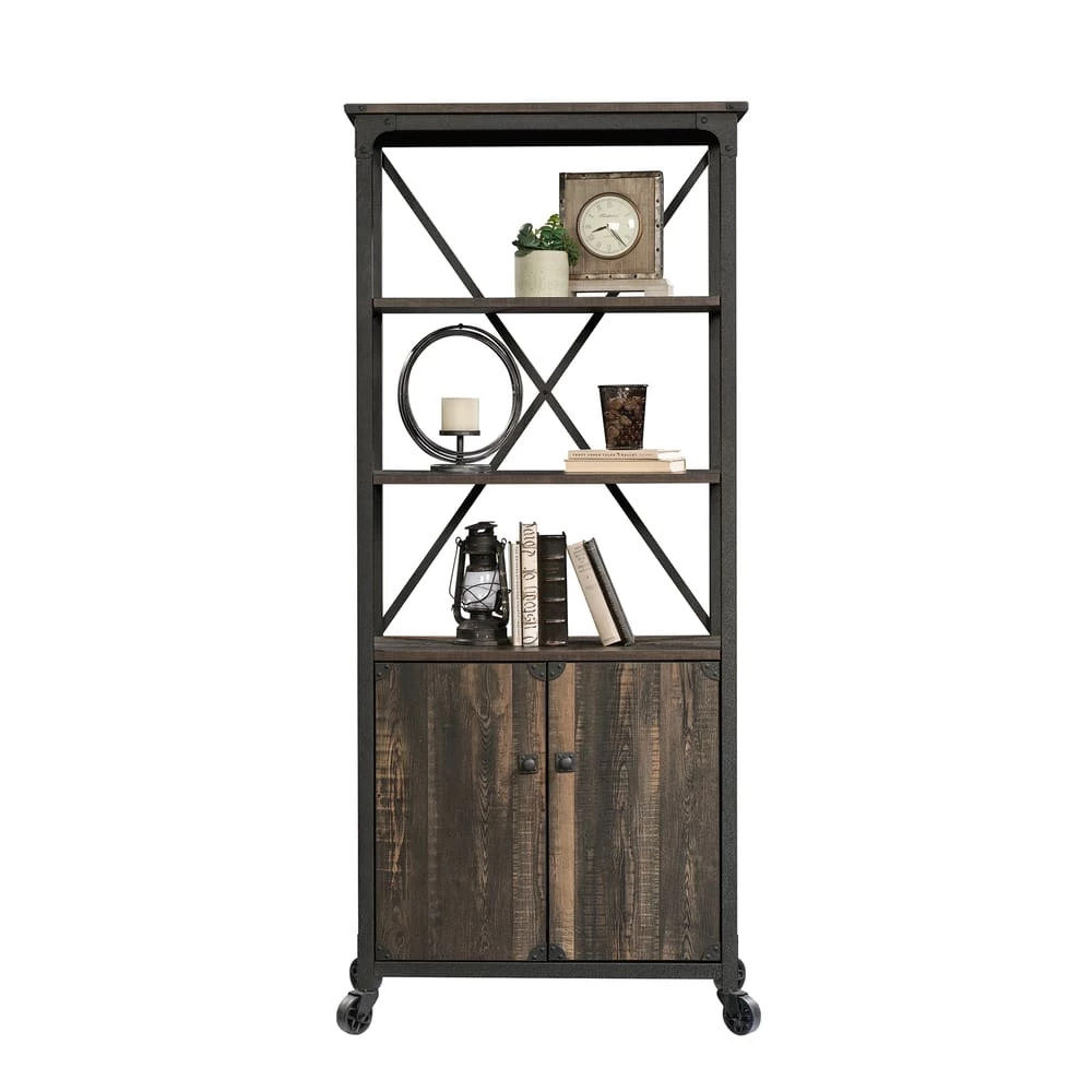 - Sauder Steel River Open-Shelf Bookcase With Doors features open shelving for storage and display of your favourite home décor